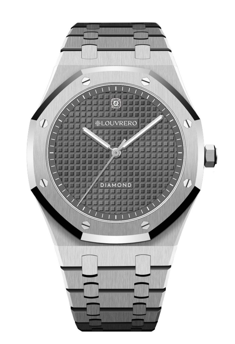 Command attention , a bold fusion of modern precision and timeless elegance. Designed for the man who values craftsmanship and sophistication, this luxury timepiece features a stainless steel case and bracelet with a sleek brushed finish and an iconic octagonal bezel—delivering a refined yet powerful silhouette. The rich green textured dial is the centerpiece, enhanced by luminous silver-tone hands and markers for effortless readability in any light. A genuine diamond set at the 12 o’clock position adds a refined touch, reflecting subtle luxury and exclusivity. Protected by scratch-resistant sapphire crystal, the dial maintains its brilliance over time. Inside, a precision quartz movement ensures dependable performance, while water resistance offers confidence and versatility for daily wear or formal occasions. This is more than just a men’s silver watch—it’s a symbol of personal style, ambition, and attention to detail. Whether you're dressing for the office, a formal event, or elevating your everyday look, the Eclipse Diamond Watch delivers elegance with purpose. Make your mark with a piece that blends tradition with innovation—crafted for those who lead with distinction.